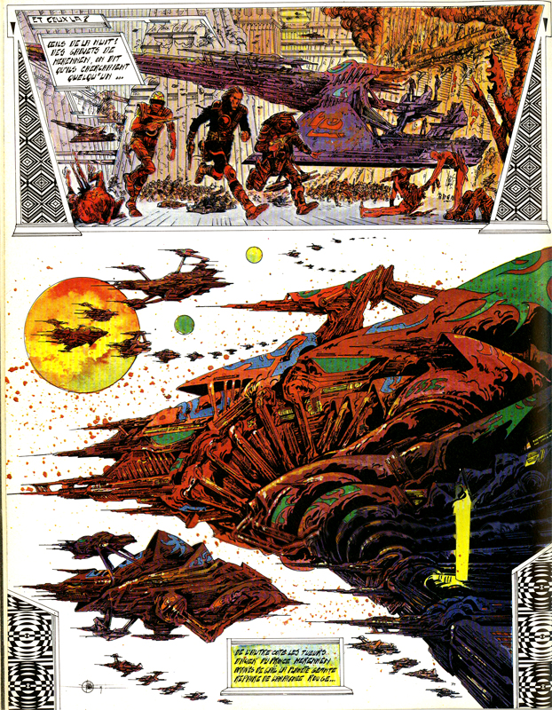 Druillet, poate cel mai mare vizionar al anilor '60- '70, cand imagineaza o nava spatiala dintr'un viitor probabil si un spatiu posibil, combina tot felul de amintiri zoomorfe si obtine rezultate spectaculoase...