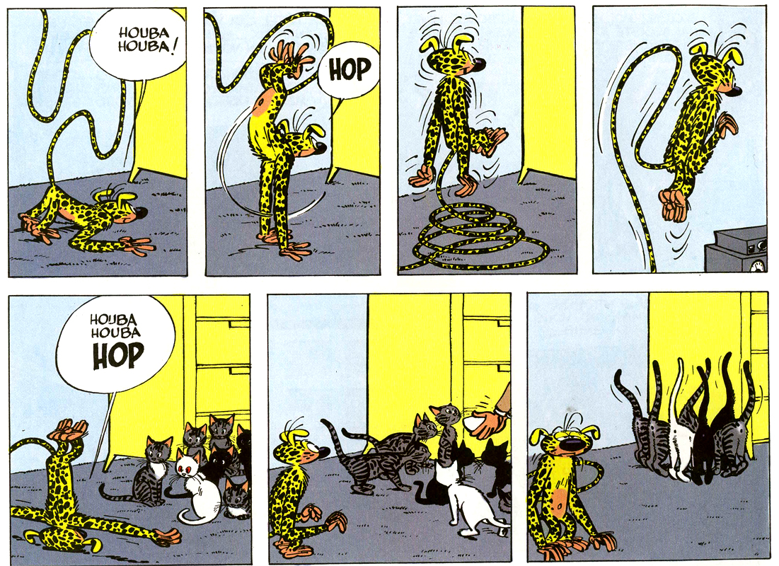 Cand Franquin a renuntat sa mai deseneze aventurile lui Spirou si Fantasio, el si'a retras din aceasta serie personajul pe care'l inventase cu ani buni in urma: fireste, e vorba de Marsupilami. Personajul va fi vandut unei edituri, care va exploata tot ce era de stors din bietul animal : o serie de vreo 25 de albume de banda desenata, care nu prea are legatura cu minunatul univers creat de Franquin; un serial de desene animate destul de anonim, dar ceea ce este cel mai important. o colectie impresionanta de jucarii si gadgeturi, care au umplut buzunarele negustorului !...