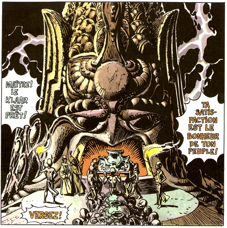 | Mezieres in "Valerian": pentru ca sa sugereze vocile puternice dintr'un spatiu deschis si plin de zgomote, desenatorul a apelat la "balonul- arici"... |